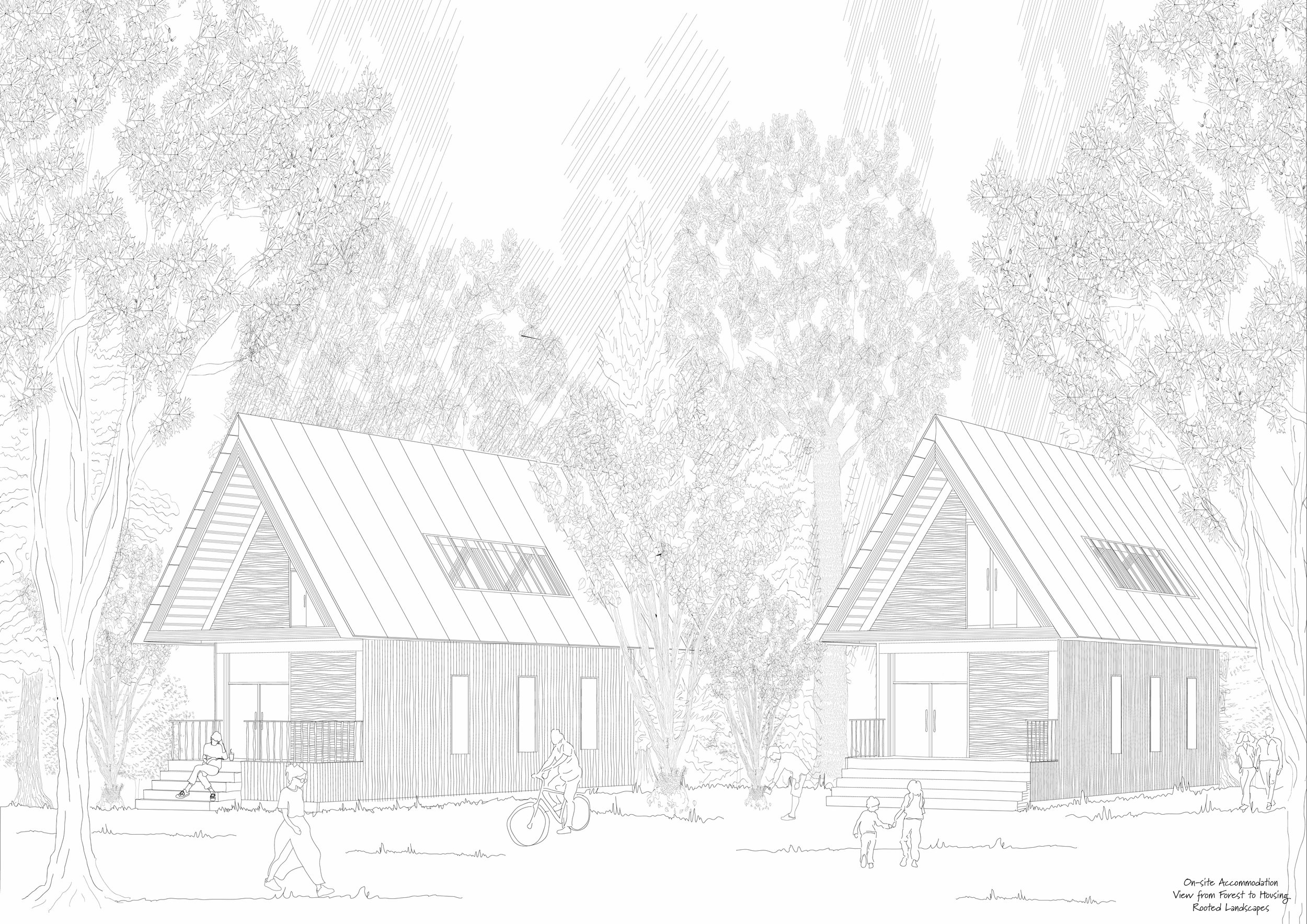 Rooted Landscapes will rest in uncharted territories, a settlement of flexible lifestyle, timber innovation and forestry education. This project is a community of people, ecosystems and the forest, ultimately offering our modernised society a different way to relate to and care for forests.